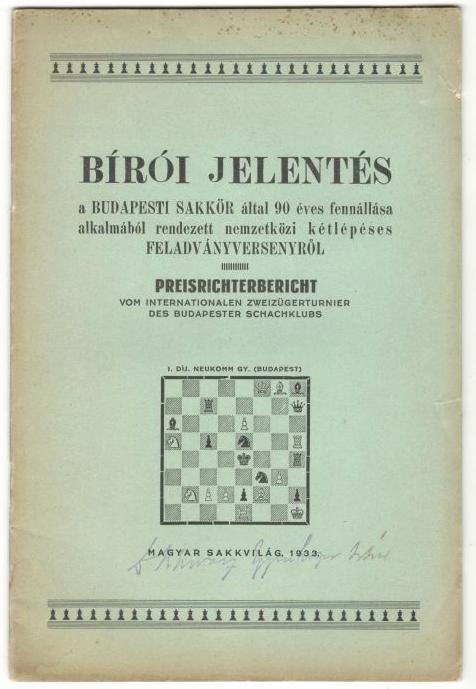 Bírói jelentés a Budapesti Sakkör által 90 éves fennállása alkalmából rendezett nemzetközi kétlépéses feladványversenyről