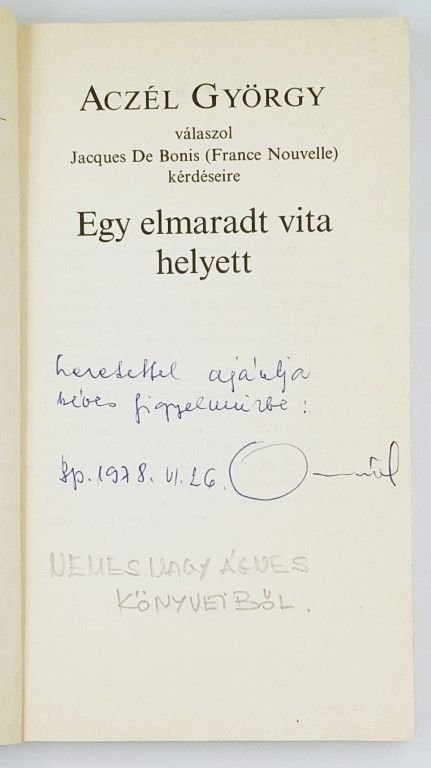 Jacques De Bonis, a “France Nouvelle”-nek, a Francia Kommunista Párt hetilapjának szerkesztője 1975 tavaszán interjú-sorozatot készített Aczél Györggyel, az MSZMP Politikai Bizottságának tagjával a szocializmus magyarországi építésének különböző kérdéseiről. Az interjú-kötetet a párizsi Éditions Sociales kiadó jelentette meg 1975 júliusában. Ennek alapján készült a magyar kiadás, amelynek közreadását azért is indokoltnak tartottuk, mert az itt közölt beszélgetés – mint Roland leroy és jaxwues De Bonis előszavából kítűni – egy elmaradt televíziós vita helyett született, amelynek, Aczél György és Alain Peyrefitte, az URD akkori főtitkára között kellett volna lefolynia 1974 elején a francia és a magyar nyilvánosság előtt. Mint ismeretes, erre a francia fél visszalépése következtében nem került sor.