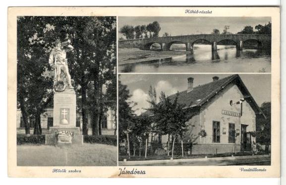 Jászdózsa. Hősök szobra, Kőhíd-részlet, Vasútállomás.