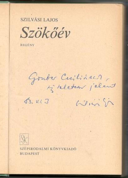 “Gruber Cecíliának tiszteletem jeléül – 83. VI. 3. Szilvási Lajos” dedikált példány!